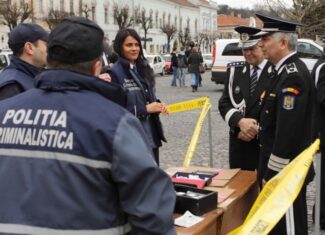 E ziua Poliției azi, în Cluj polițiștii pregătesc în centrul orașului demonstrații, își prezintă echipamentele și dau o cafea. Evenimentul are loc pe strada Universității…