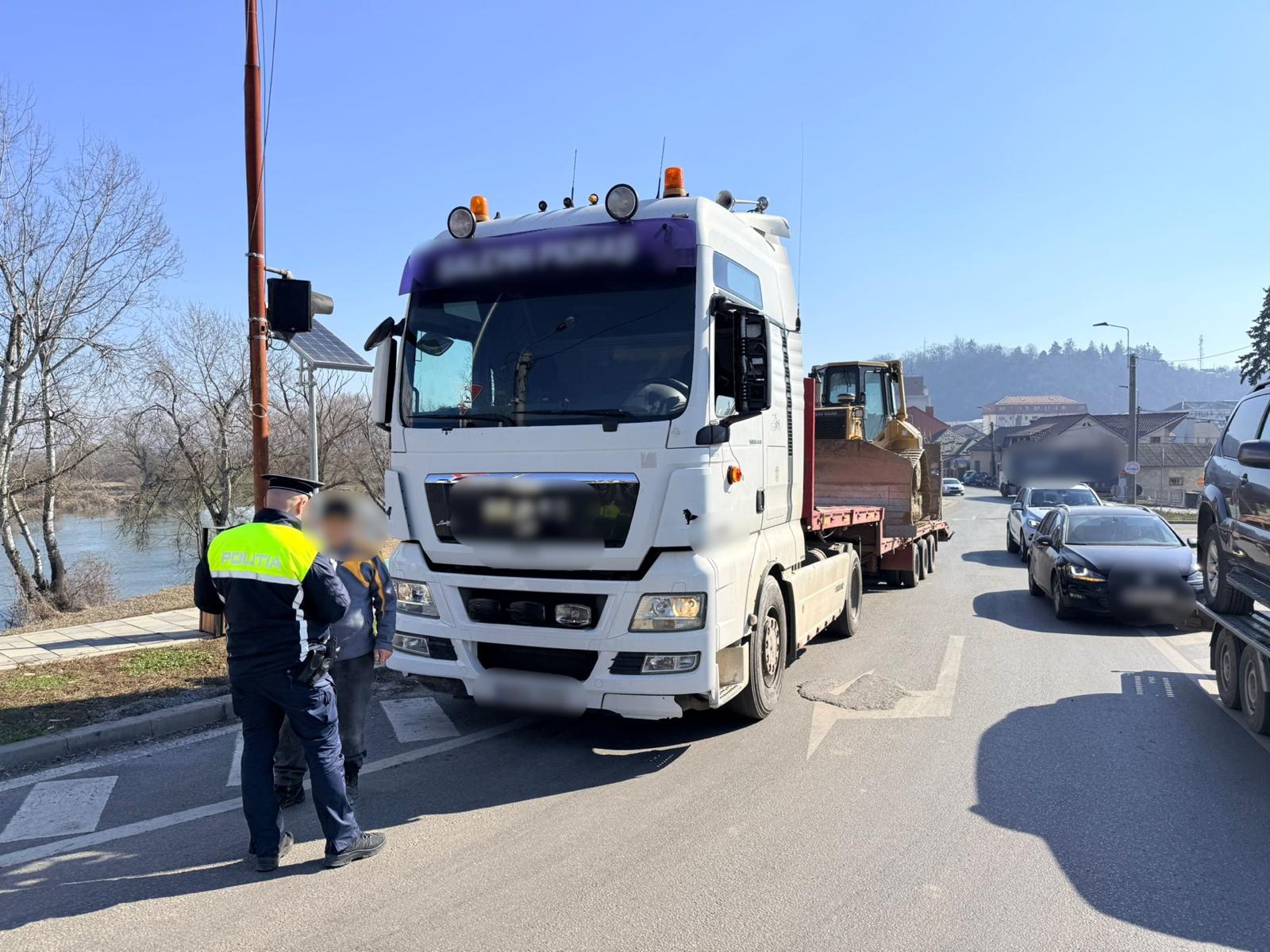 Un bărbat depistat în jurul orei 12 în Dej efectua transport public de mărfuri fără documentele necesare și fără atestat profesional valabil — amendă de 10.000 de lei, adică două mii de euro.