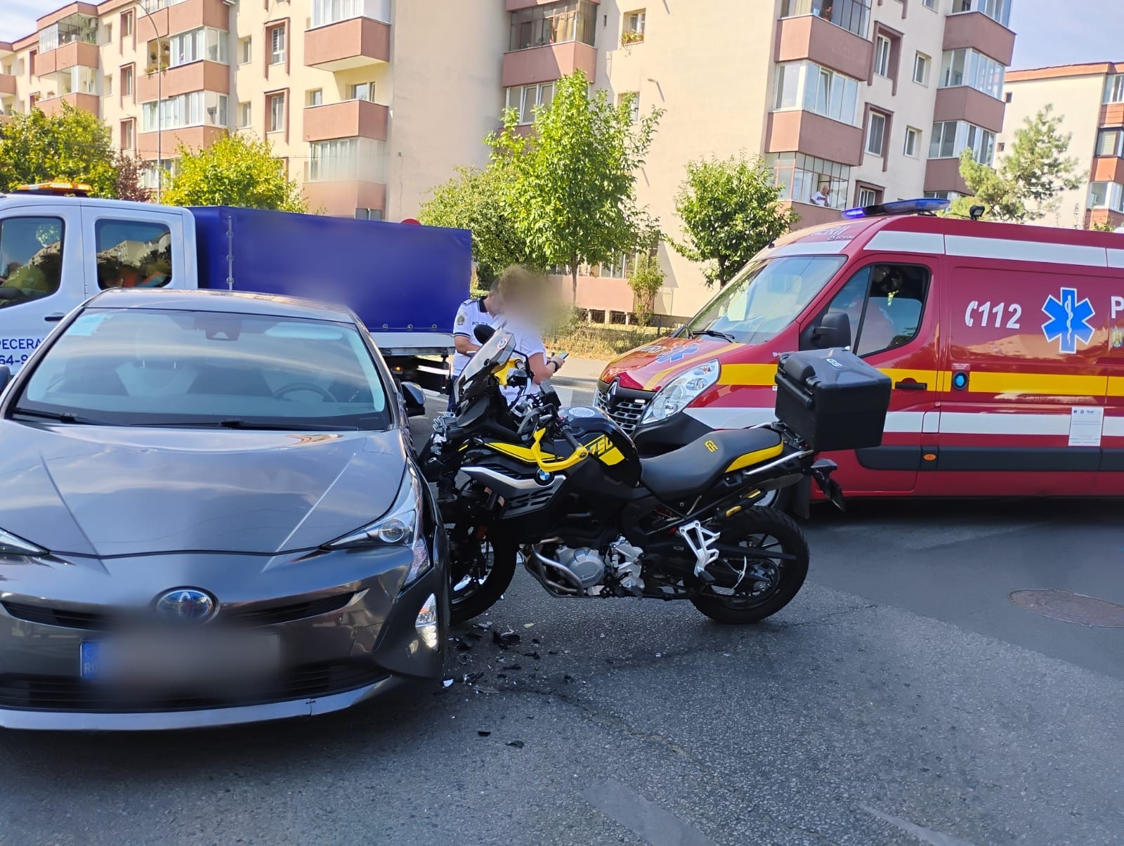 Accident rutier sâmbătă după -masă, la Cluj, pe strada Fabricii, cu o motocicletă și o mașină implicate.