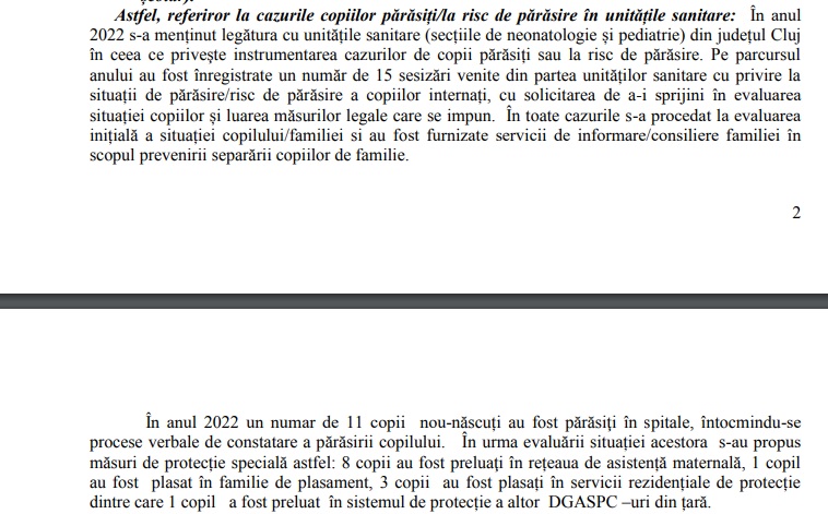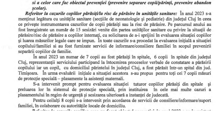 Raportul instituției pe 2023, publicat în urmă cu câteva săptămâni, arată că doar în spitalele din Cluj au fost abandonați, în anul respectiv, 15 copii: