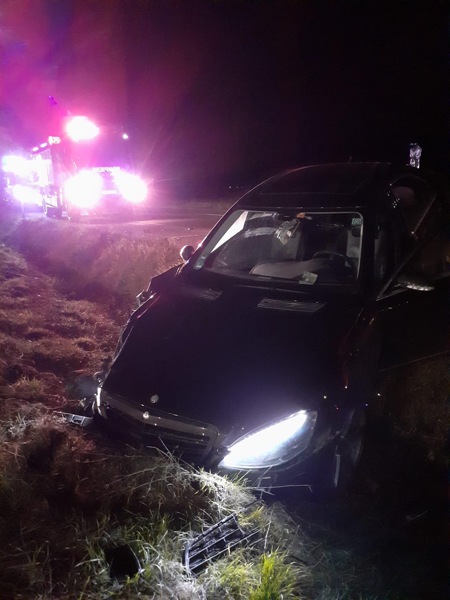 Accident aseară în Iclod, în noaptea de Crăciun, două mașini implicate, una s-a răsturnat.