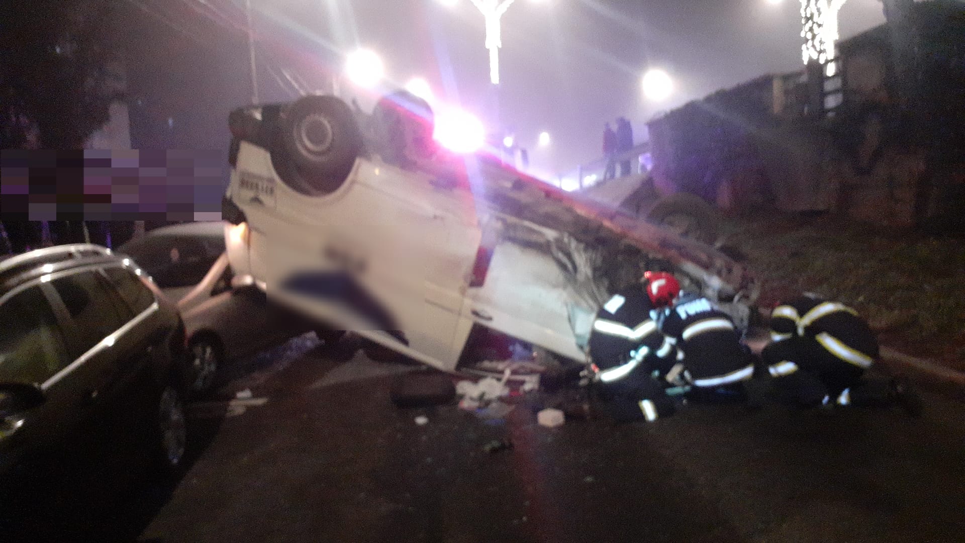 Accident aseară în Mănăștur, o mașină s-a răsturnat.