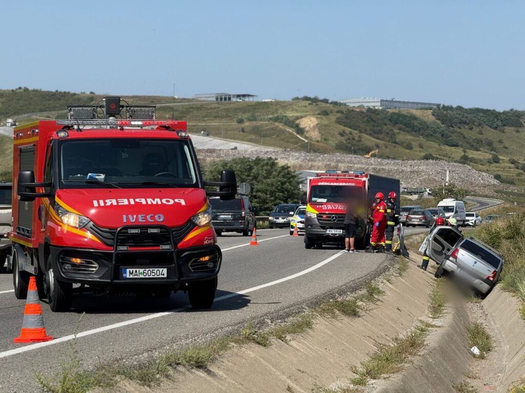 Accident în urmă cu puține momente pe centura de ocolire a Clujului, Vâlcele – Apahida. La fața locului au ajuns echipaje de prim-ajutor din Cluj-Napoca ale Inspectoratului pentru Situații de Urgență, cu două autospeciale cu modul de descarcerare și un echipaj SMURD, unde au găsit un autoturism avariat, ieșit în afara părții carosabile, în care au rămas două persoane blocate. ”Pompierii au folosit echipamentele din dotare pentru a le evacua din autoturism. Trei persoane au fost consultate la locul accidentului, respectiv un bărbat și două femei, care ulterior au fost transportate la spital pentru investigații și îngrijiri medicale. Conform primelor evaluări acestea au suferit afecțiuni ușoare”, a arătat Inspectoratul pentru Situații de Urgență.