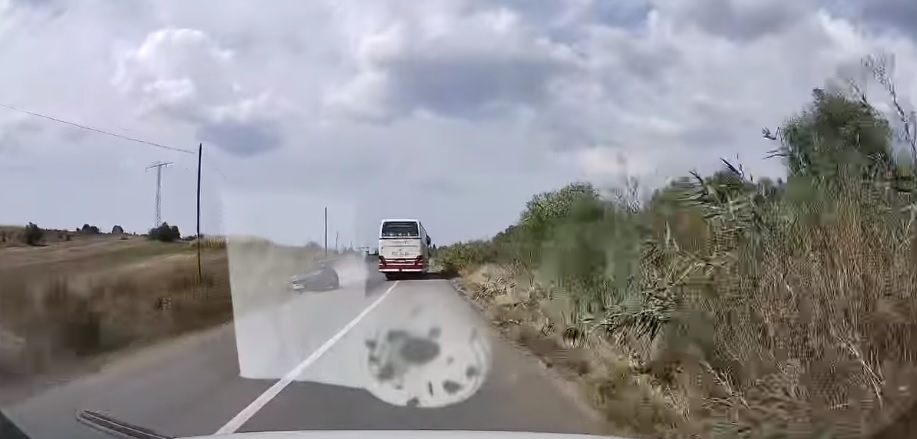 VIDEO Accident dramatic ieri în Cluj pe un drum județean, șoferul unui autocar a intrat pe contrasens și a scos o mașină de pe carosabil