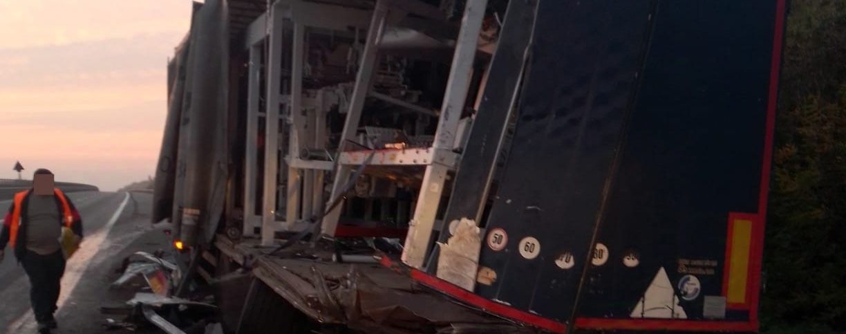 Accident pe Autostrada Transilvania în această dimineață, două TIR-uri implicate, un rănit