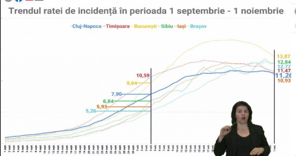 Edilul a prezentat o serie de date la zi privind rata de incidență din judetul Cluj dar și date pe municipiul Cluj-Napoca plus o comparație cu alte municipii din România care întregistrează rate de infectare mult mai mari.