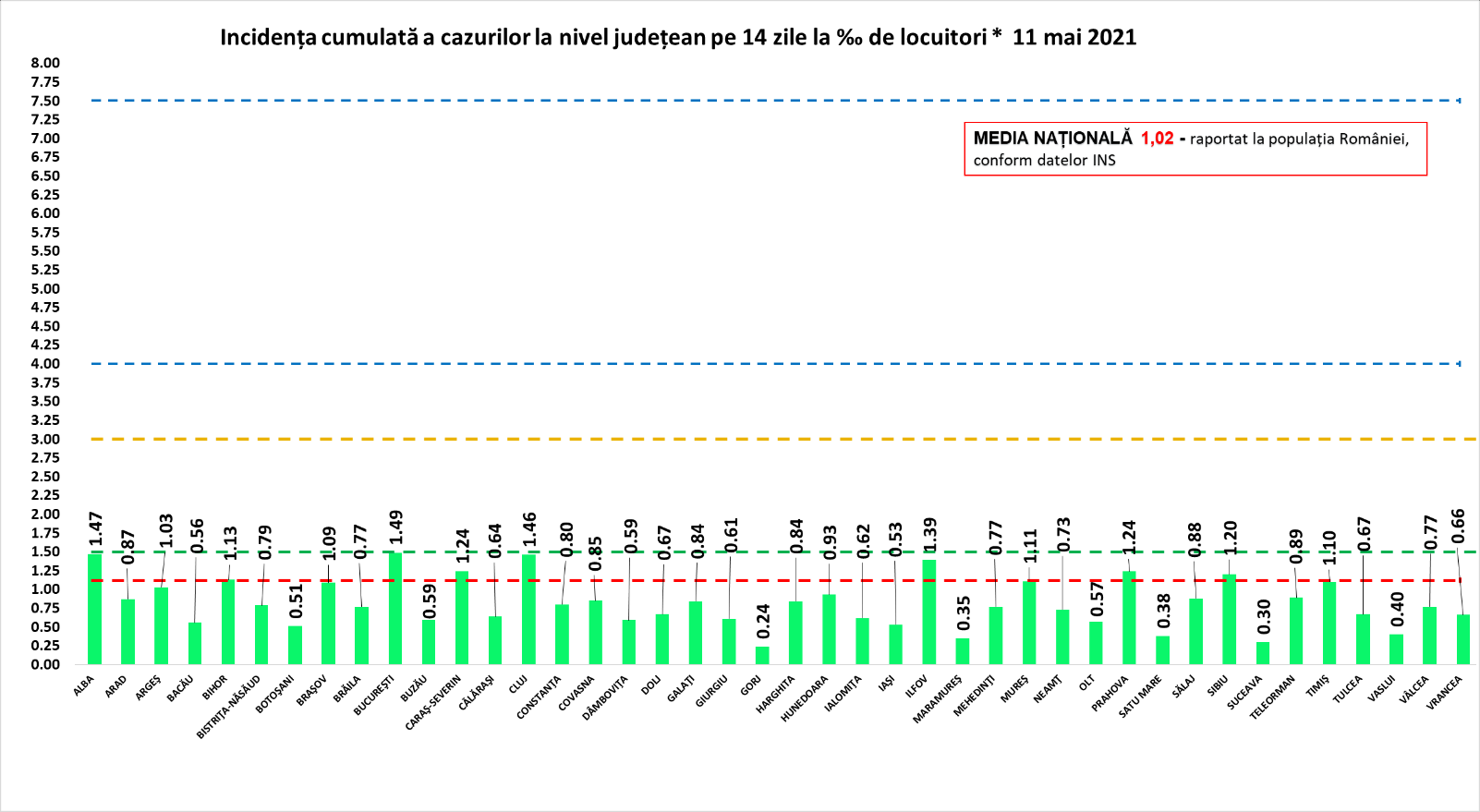 Incidența infecției, în Cluj, e azi de 1,46 cazuri la mia de locuitori, în continuare a doua cea mai ridicată din țară, după Capitală cu 1,49 cazuri la mie. Spre comparație, media națională e azi de 1,02 cazuri la mie.