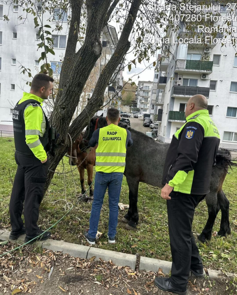 Echipele 𝐏𝐨𝐥𝐢𝐭̦𝐢𝐞𝐢 𝐋𝐨𝐜𝐚𝐥𝐞 𝐅𝐥𝐨𝐫𝐞𝐬̦𝐭𝐢, împreună cu echipa R.A.D.P. Cluj Napoca, au intervenit pentru 𝐫𝐢𝐝𝐢𝐜𝐚𝐫𝐞𝐚 𝐚 𝐝oi cai care se aflau pe domeniul public, punând în pericol siguranța circulației rutiere și pe cea a pietonilor.