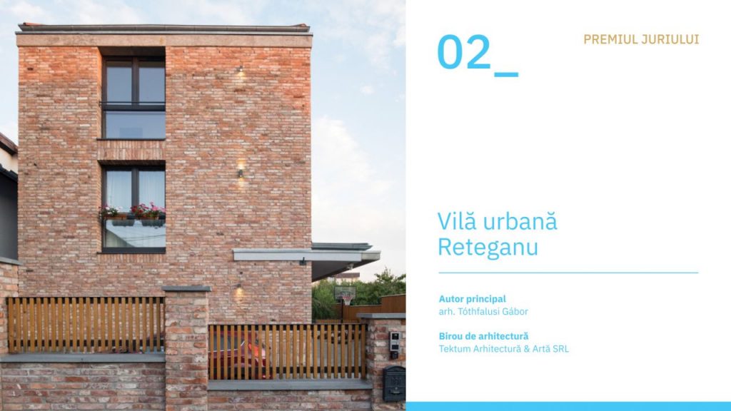 Arhitectura locuințelor colective – premiul a fost câștigat de VILA URBANA RETEGANU, Cluj Napoca, autor principal arh. Tóthfalusi Gábor, birou de arhitectură Tektum Arhitectură & Artă.