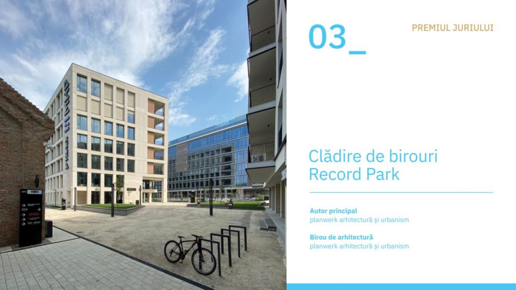 Arhitectura dotărilor comunitare și de producție – premiul a fost câștigat de RECORD PARK OFFICE BUILDING, Cluj Napoca, autor principal Planwerk Arhitectură și Urbanism, birou de arhitectură Planwerk Arhitectură și Urbanism