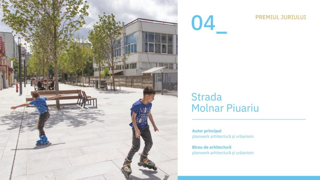 Arhitectura spațiului public – premiul a fost câștigat de STRADA MOLNAR PIUARIU, Cluj Napoca, autor principal Planwerk Arhitectură și Urbanism, birou de arhitectură Planwerk Arhitectură și Urbanism.
