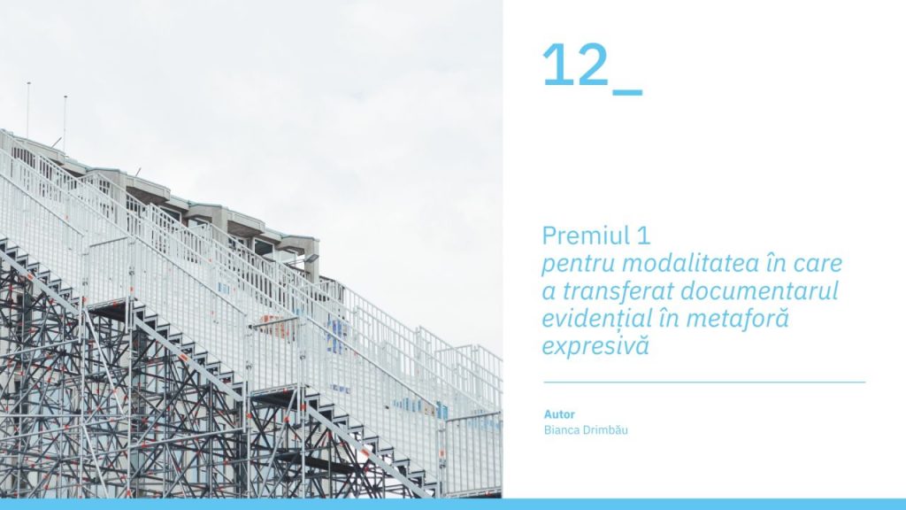 Fotografie de arhitectură – premiul a fost câștigat de Bianca Drimbău, pentru modalitatea în care a transferat documentarul evidențial în metafora expresivă.