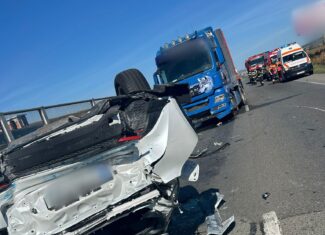Accident la ieșirea din Apahida spre Jucu, un camion și două mașini implicate, dintre care una răsturnată, din fericire fără victime, dar o femeie rănită…