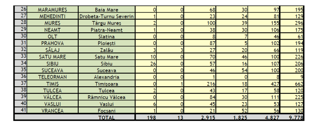 Nr. crt.JudețNumăr terenuriNr. Unități IndividualeTotal Imobile