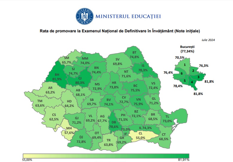 Astfel, în Cluj procentul e de 80,3%, după cum arată datele publicate de Ministerul Educației. E a doua cea mai bună rată de promovare din țară, după cea înregistrată în Bihor – 81,9%. De altfel, doar aceste două județe au obținut procente peste 80% de promovare la acest examen.