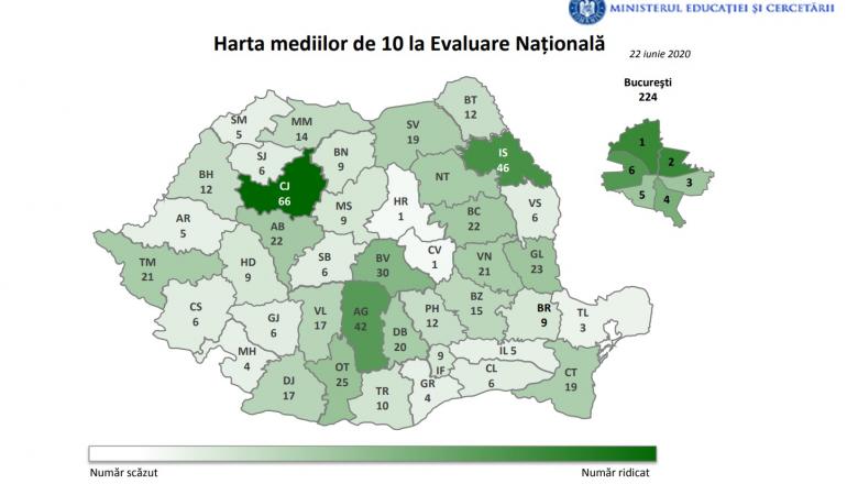 La examenul de evaluare națională Clujul a avut în acest an cele mai multe medii de zece, nu mai puțin de 66. Alți zece elevi de liceu au obținut media 10 la examenul de bacalaureat.