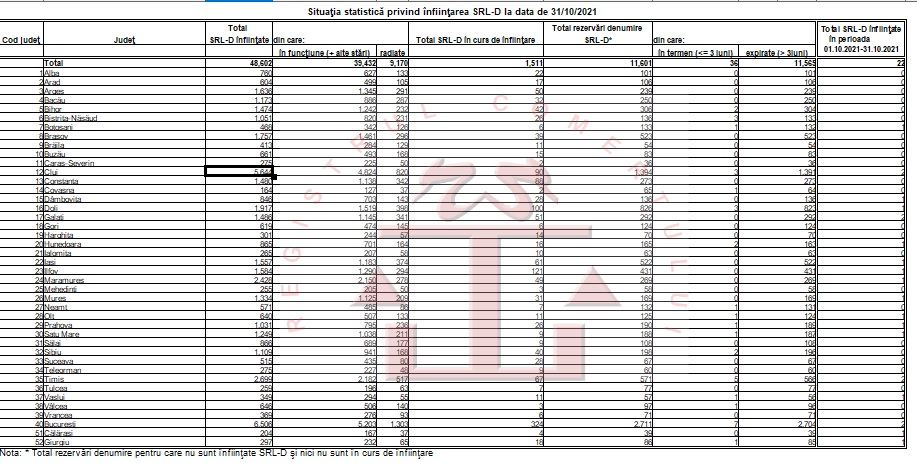 În Cluj au fost înființate până acum peste 5.600 de astfel de firme, de departe cele mai multe din țară, cu excepția Bucureștiului. E vorba mai exact de 5.644 de astfel de firme, considerabil peste restul județelor, unde au fost înființate cel mult aproximativ două mii de astfel de firme, și la mică distanță de București, unde figurează 6.500 de SRL-D-uri. Dintre acestea, 4.800 sunt încă în funcțiune, în vreme ce peste opt sute au fost radiate. Clujul e urmat la mare distanță de Timiș cu 2.700 de astfel de firme și Maramureș cu 2.400.