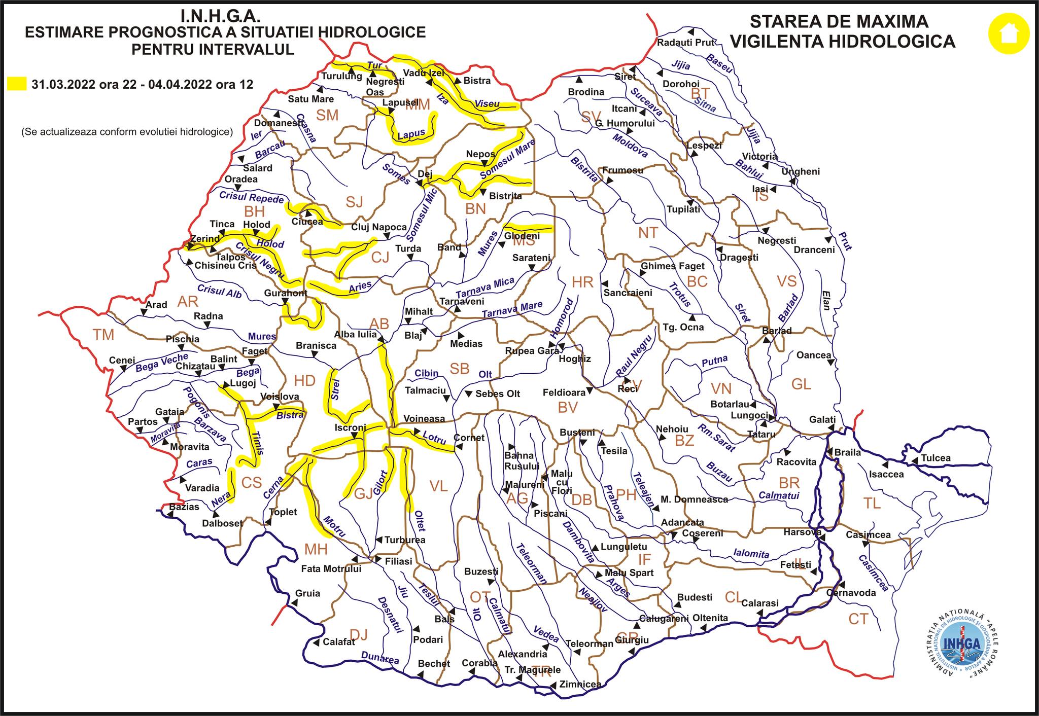 Sunt așteptate, în acest interval, scurgeri importante pe versanţi, torenţi şi pâraie, viituri rapide pe râurile mici cu posibile efecte de inundaţii locale şi creşteri de debite şi niveluri pe unele râuri din bazinele hidrografice menţionate, cu posibile depăşiri ale cotelor de atenție.