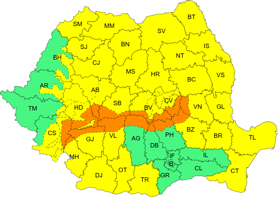 Aproape toată țara e sub avertizări cod galben sau portocaliu de intensificări ale vântului și ninsori viscolite, avertizarea e valabilă din 28 decembrie la ora 2 până a doua zi la ora 10 dimineața; sunt așteptate intensificări ale vântului și ninsori viscolite în Maramureș, Transilvania, Moldova și Dobrogea, precum și la munte; intensificări ale vântului în Oltenia, local în Muntenia și sudul Banatului. Totodată, în intervalul menționat vântul va prezenta intensificări în cea mai mare parte a țării. La munte vor fi rafale de până la 110 km/h, iar în Moldova și Transilvania viteza vântului va atinge 70 km/h și pe arii restrânse 80 km/h.