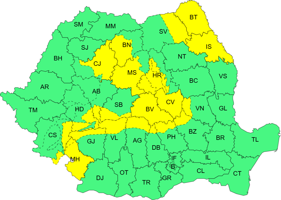 Administrația Națională de Meteorologie a emis în această dimineață o atenționare meteorologică de tip cod galben de intensificări ale vântului pentru câmpia Transilvaniei, inclusiv jumătatea de est a județului Cluj. Avertizarea e valabilă până diseară la ora 21, interval în care meteorologii se așteaptă ca în nordul, estul și sud-estul Transilvaniei, nord-estul Moldovei și vestul Olteniei, vor fi intensificări ale vântului cu viteze de 50…65 km/h. În Carpații Meridionali și de Curbură, rafalele să atingă până la 90 km/h.