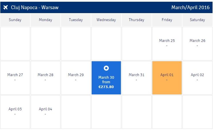 Conform ofertei companiei, în prima zi de operare – 30 martie – zborul Cluj-Varșovia costă 273 de euro. În aprilie se găsesc însă bilete și cu aproximativ 106 euro.