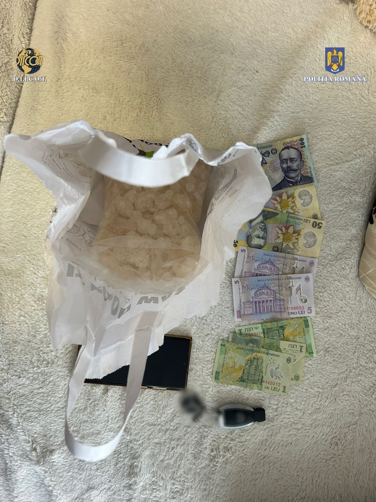 E vorba de o persoană prinsă ieri în flagrant delict, în comuna Florești, în timp ce ar fi comercializat 1,6 kilograme de droguri de mare risc – adică 3-CMC, cunoscut sub denumirea de cristal. Polițiștii Brigăzii de Combatere a Criminalității Organizate Cluj, împreună cu procurorii DIICOT Cluj au deschis dosar penal pentru trafic de droguri de mare risc și efectuarea de operațiuni cu produse știind că acestea sunt susceptibile de a avea efecte psihoactive, ilegal. Ulterior au fost puse în aplicare două mandate de percheziție domiciliară, fiind descoperite și ridicate peste 17,5 kilograme de droguri de mare risc și substanțe psihoactive – 3-CMC, MDMA, 2-MMC și N-Ethylnorpentedrone -, precum și alte mijloace de probă. Azi procurorii DIICOT au reținut persoana respectivă, cercetată pentru trafic de droguri de mare risc și efectuarea de operațiuni cu produse știind că acestea sunt susceptibile de a avea efecte psihoactive, fără a deține autorizație. A fost sesizat judecătorul de drepturi și libertăți din cadrul Tribunalului Cluj, cu propunere de arestare preventivă a persoanei, pentru 30 de zile.