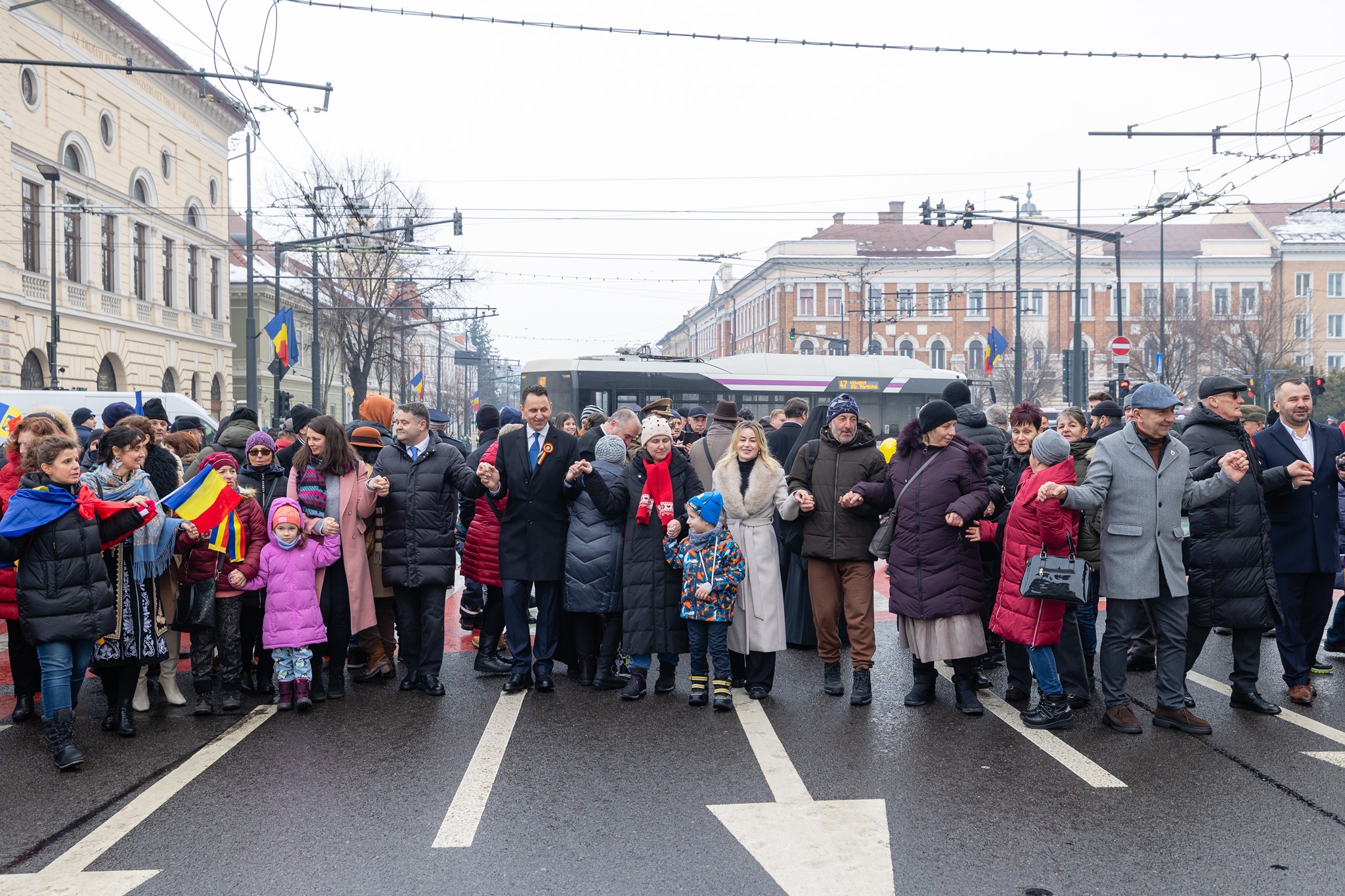 Liderii locali și parlamentarii care reprezintă Clujul la București s-au prins în horă, alături de cetățeni, într-un gest simbolic de unitate și solidaritate. Autoritățile au transmis mesaje despre importanța coeziunii și a viitorului României, primarul Emil Boc subliniind că unitatea este „cea mai bună formă de apărare și cea mai sigură investiție în viitorul nostru”.