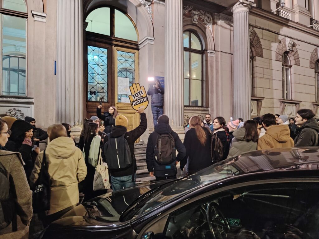 Câteva sute de persoane au ieșit miercuri seară în fața Palatului de Justiție din Cluj-Napoca pentru a protesta față de situația din sistemul judiciar și pentru a cere independența reală a justiției.