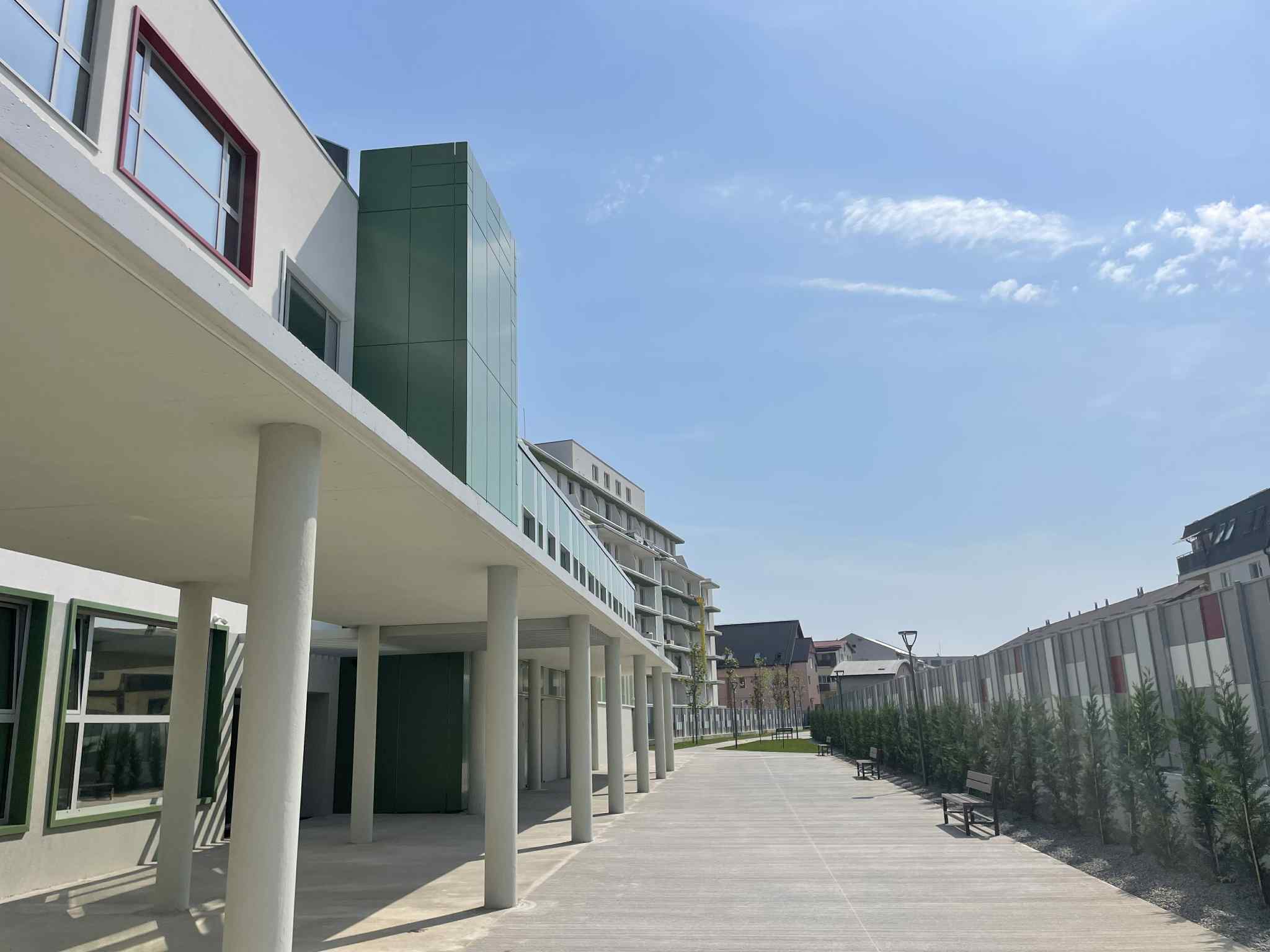 Dacă școala arată extraordinar, zona în care ea este construită nu este cel mai bun exemplu de dezvoltare urbanistică. De pe un geamul școlii se poate privi încă șantierul blocurilor dar și locuințe-garsoniere unde locatarii încă întind rufele pe gard ca să și le usuce.