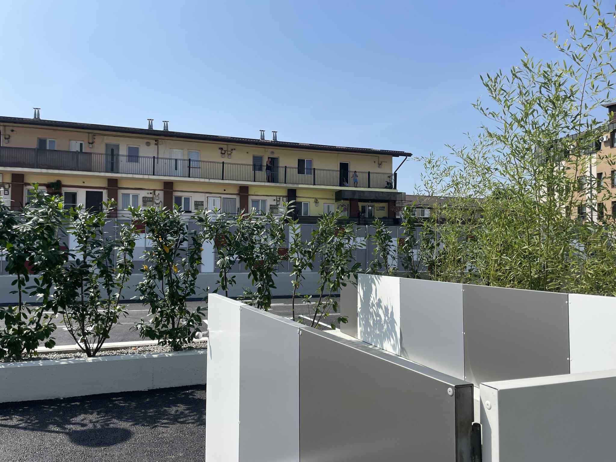 16 locuri pentru biciclete, 48 de ocuri pentru trotinete, 12 parcări auto la sol