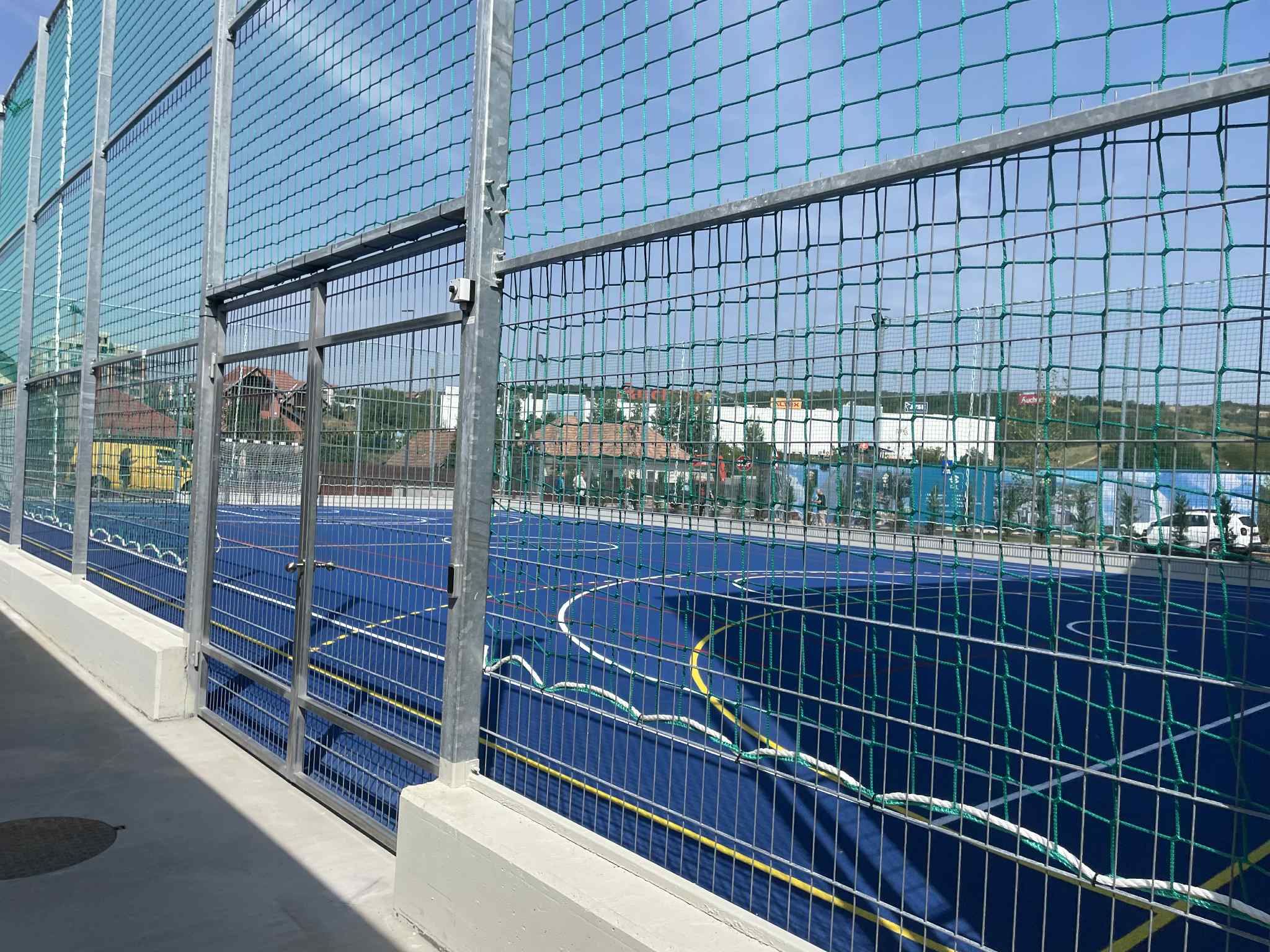 – Imprejmuire teren sport cu system de gard cu panouri drepte dublu fir h=2,43 si plasa de