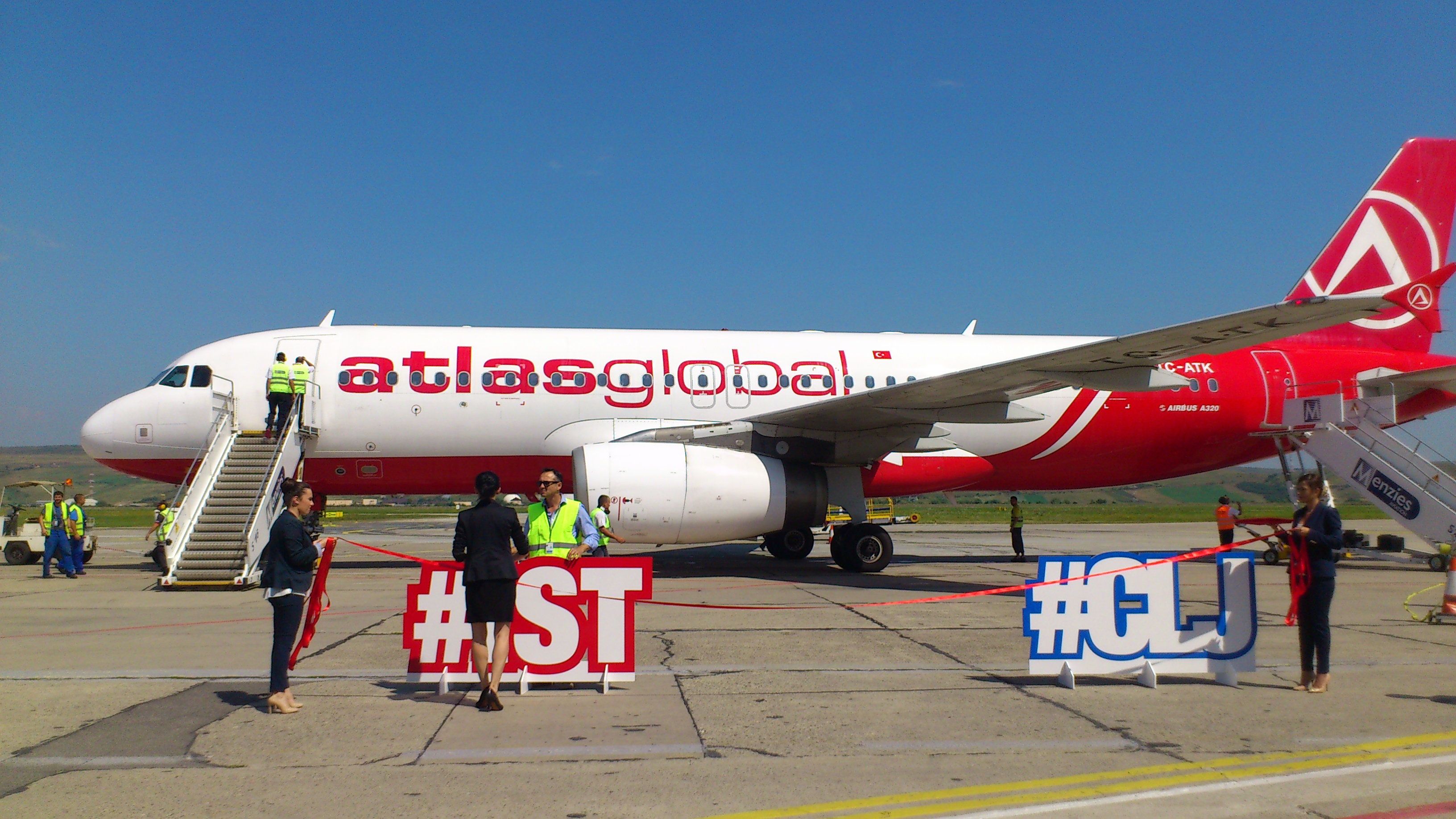Compania turcă Atlasglobal Airlines a lansat astăzi primul zbor pe ruta Istanbul – Cluj-Napoca, Cluj-Napoca – Istanbul. Avionul alb-roșu venit de la turci a aterizat la 11.30 pe pista aeroportului clujean, a fost stropit, cu jeturile de apă inaugurale, oficialii s-au înșirat la tăierea panglicii, s-a adus tort cu avion. Cu Turcia răvășită zilele acestea, după un atentat terorist la aeroportul Ataturk, o lovitură de stat eșuată, urmată de „epurări” în sistem, arestări și destituiri, Zborul introdus de Atlasglobal e primul pe ruta Cluj-Istanbul, deși patru companii au anunțat intenția de a introduce curse regulate pe acest traseu.