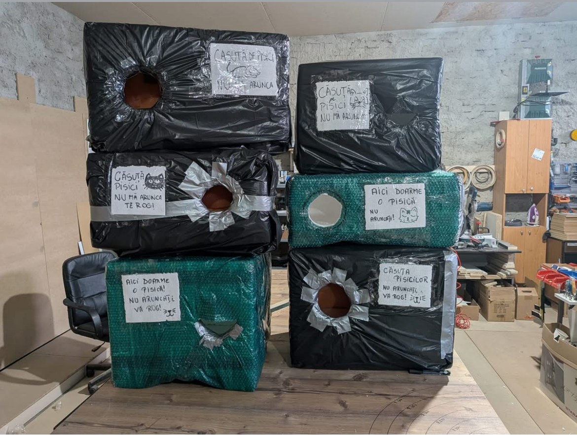 Voluntari din Cluj au construit și amplasat, în ultimele zile, mai multe căsuțe pentru animale fără stăpân, ca răspuns la temperaturile scăzute din această perioadă. În total, 21 de adăposturi au fost realizate și distribuite în diferite zone ale orașului, pentru a oferi protecție pisicilor de pe străzi.