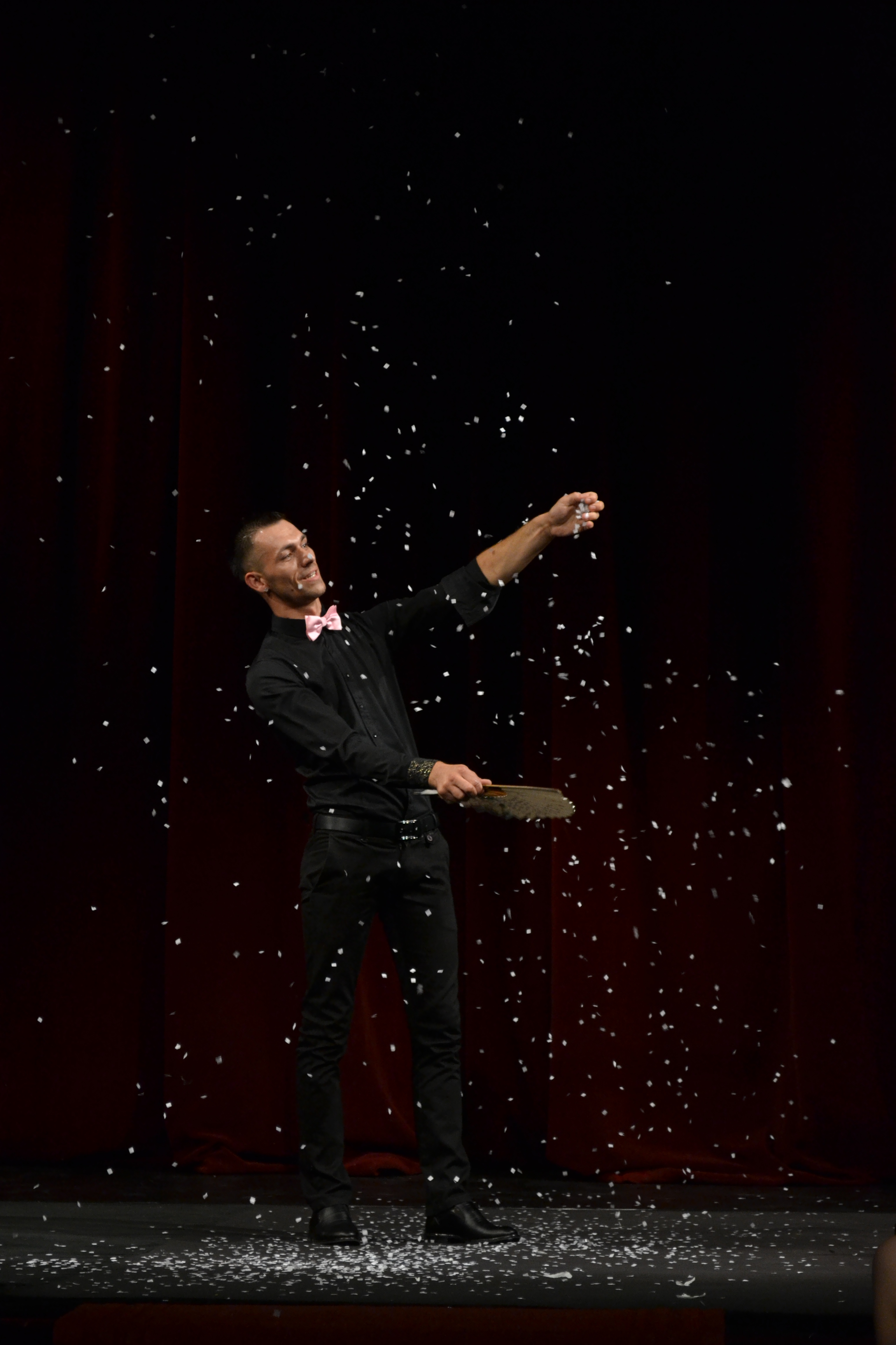 Piticul ar fi observat că toţi încearcă să implice publicul, potrivit tradiţiei artei. Legată cu o eşarfă la ochi şi aşezată în mijlocul scenei cu podele negre, în sala plină de spectatori, una dintre participante este îndemnată să se relaxeze şi să urmeze instrucţiunile magicienilor, un altul este rugat să îşi pună la bătaie banii (cele mai “mari” bancnote din portofel), altora li se solicită intervenţia pentru a deumi destinaţii ideale de vacanţe, iar copiii devin cei mai entuziaşti şi naturali asistenţi de magicieni.