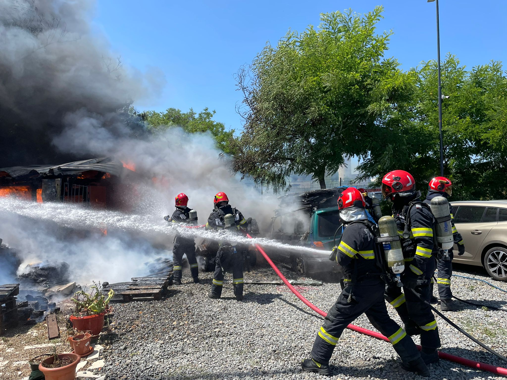 De asemenea, echipajele operative au protejat de arderea scăpată de sub control aproximativ 20 de autoturisme parcate în apropiere.