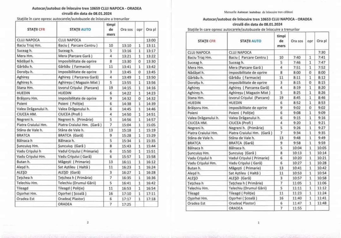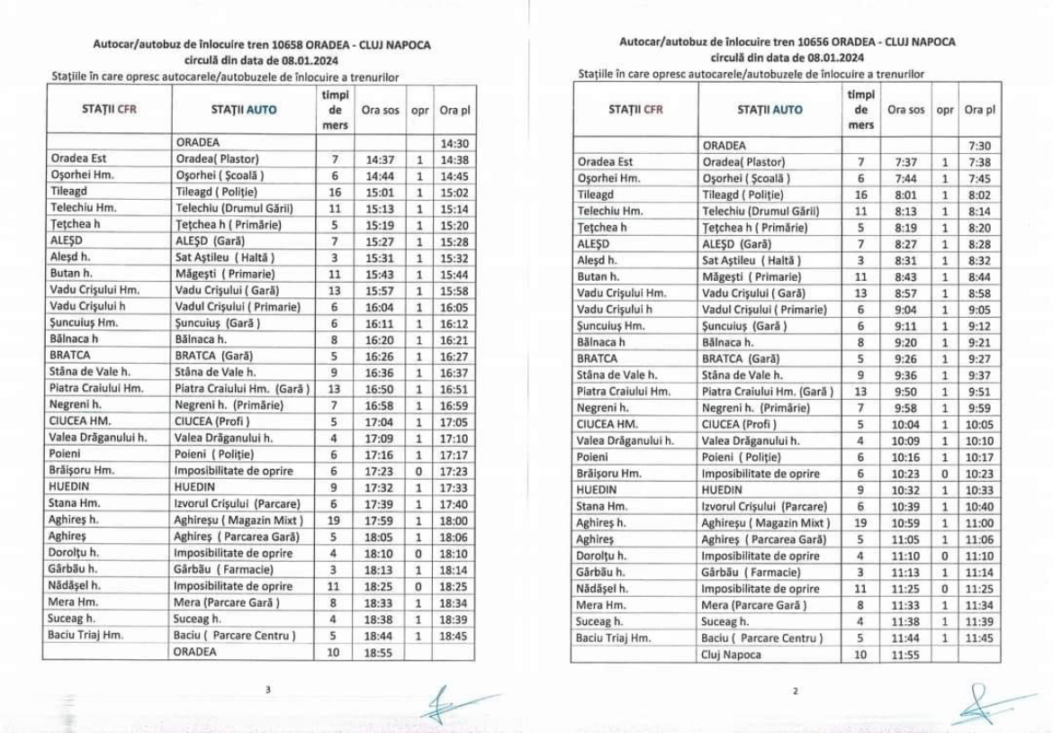 Autocarelor/autobuzelor vor înlocui trenurile CFR si TFC, pe ruta Cluj Napoca – Oradea, din data de 08.01.2024. Circulația feroviară va fi restricționată până în 2026, când trebuie finalizate lucrările de electrificare a căii ferate Cluj-Napoca-Episcopia Bihor.
