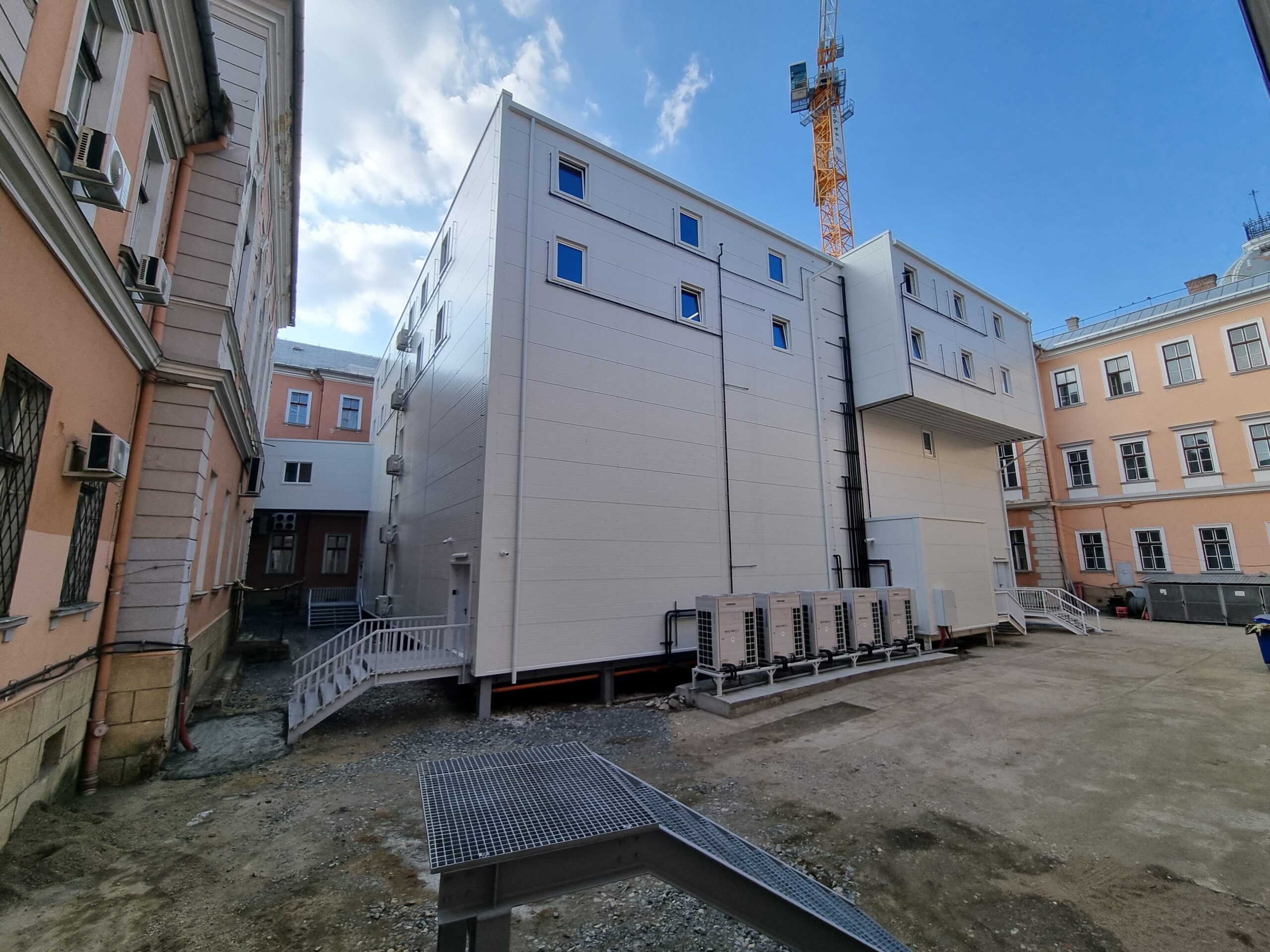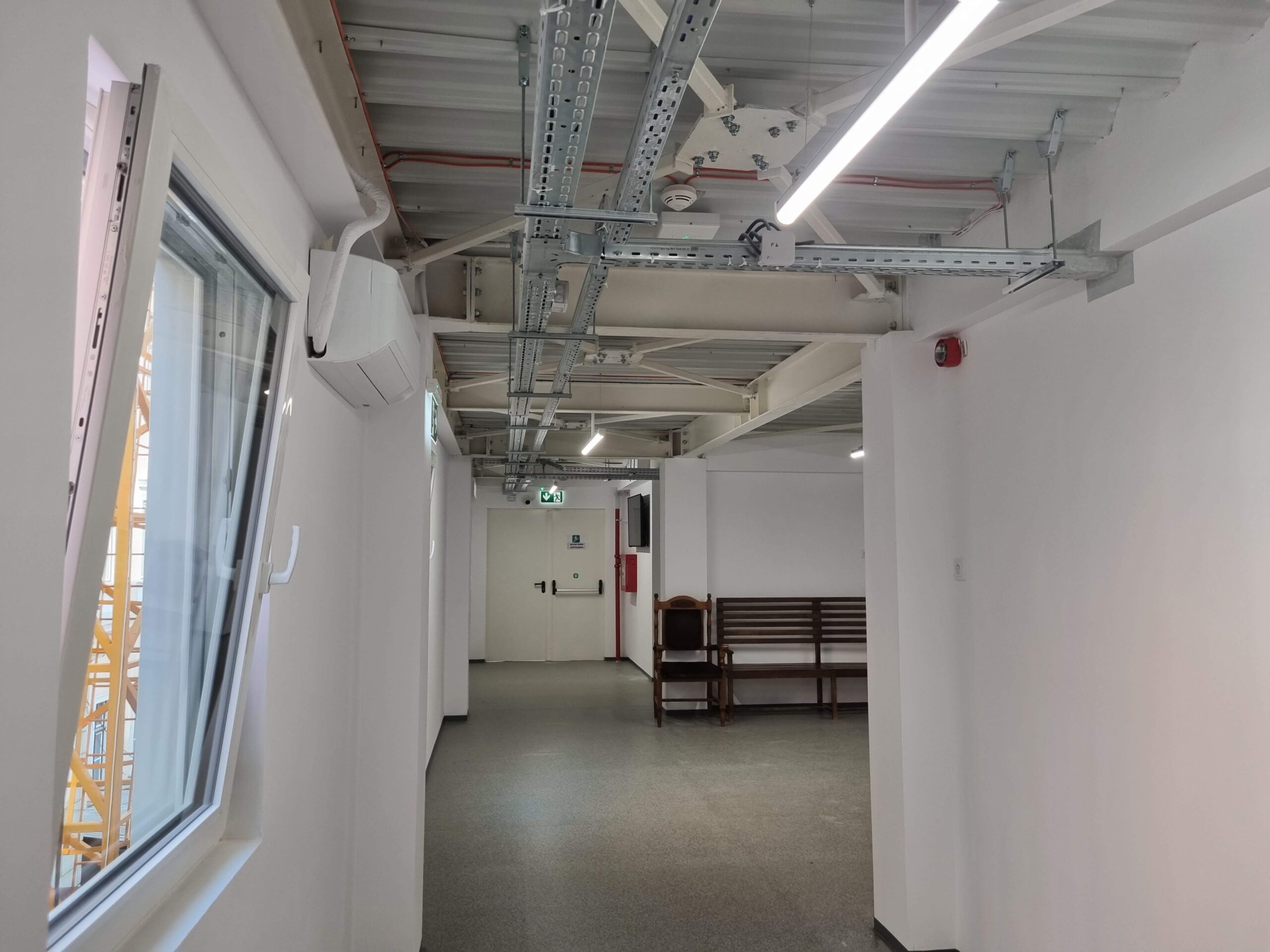 Clădirea este dotată cu unități de climatizare – nu mai puțin de 66, cu trei unități tip casetă în fiecare sală, plus zece pe holuri.