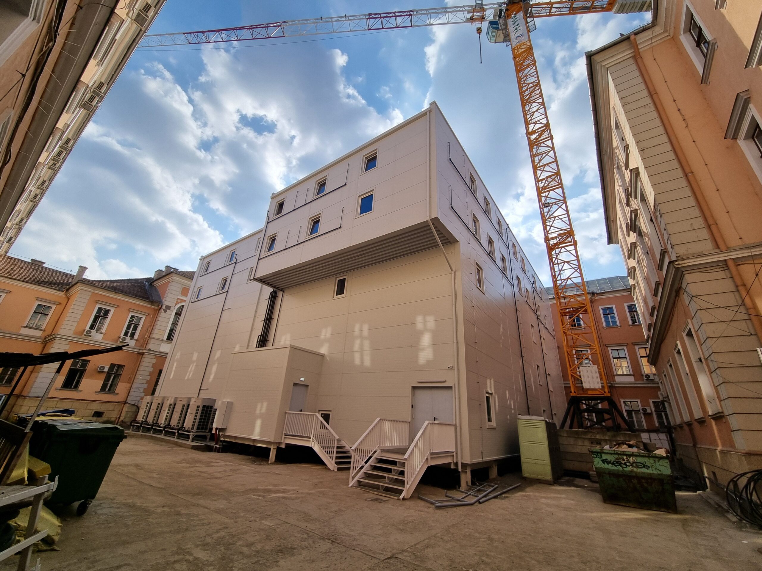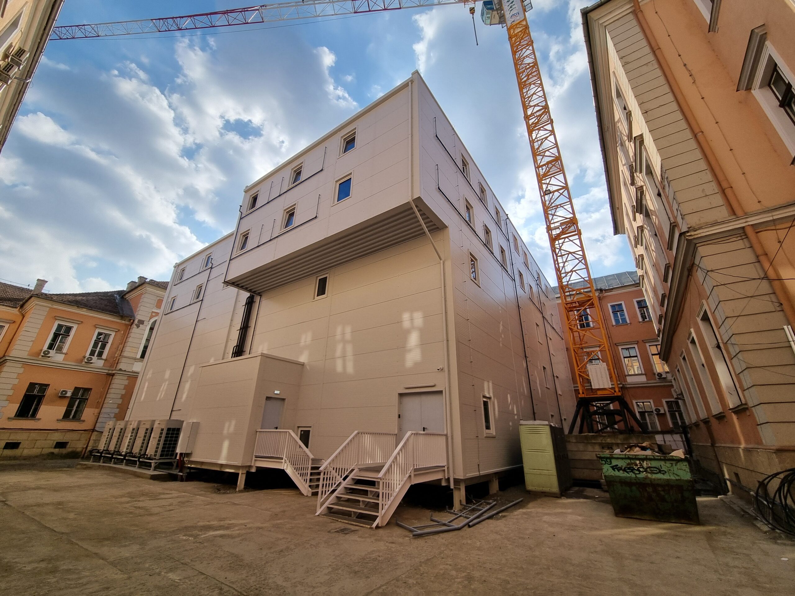 E aceasta cea mai mare clădire modulară din România? Încep procesele în clădirea construită din metal din curtea Palatului de Justiție din Cluj, cu 5 nivele, 3200 mp, 54 de birouri și 12 săli de judecată / 170 oameni lucrează aici zilnic, plus justițiabilii