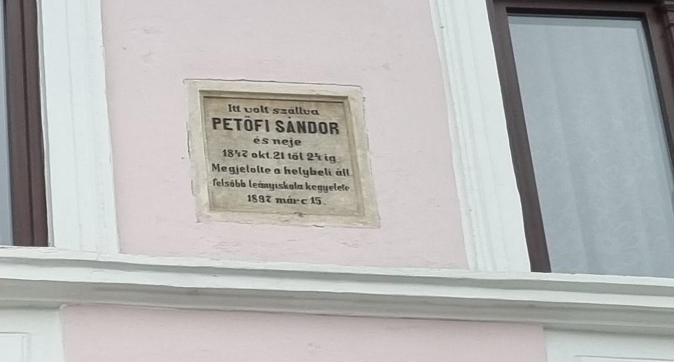 Pe fațada clădirii a fost amplasată o placă, în 15 martie 1897, care arată că faimosul poet Petőfi Sándor a mas aici pentru câteva nopți:
