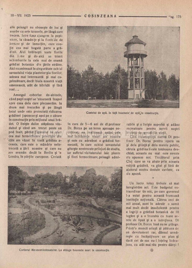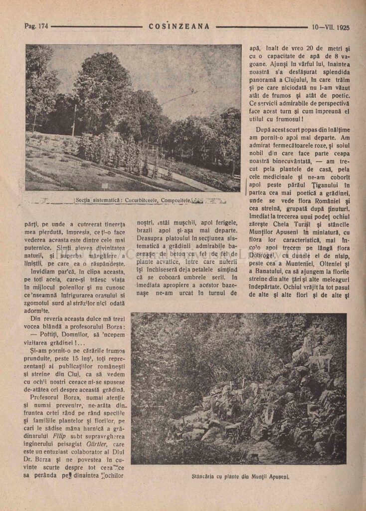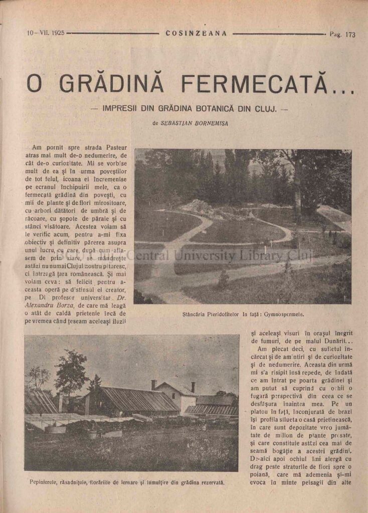 La o sută de ani de la deschiderea grădinii botanice din Cluj-Napoca, un reportaj publicat chiar în anul inaugurării de către reputatul jurnalist Sebastian Bornemisa în revista sa ”Cosânzeana” arăta că aceasta e o ”mândrie neîntrecută a țării noastre”.