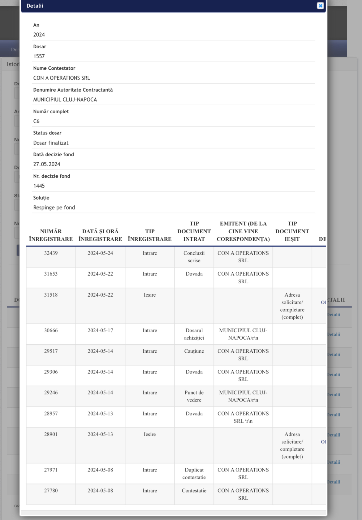 Contestația singurului ofertant, Con-A Operations, pentru lucrările de proiectare și execuție a Centurii Metropolitane a Clujului a fost respinsă de Consiliul Național pentru Soluționarea Contestațiilor (CNCS). Primăria Cluj-Napoca a anulat deja licitația, după ce ofertantul a fost descalificat pe motiv că oferta depusă a fost cu 30% mai mare decât valoarea estimată a contractului.