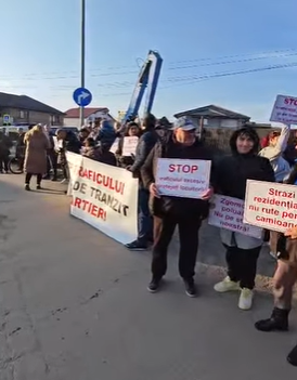Oamenii au protestat și în cartier, în cadrul unei acțiuni din 5 martie care a strâns câteva zeci de persoane, revolatate că trebuie să suporte viteza și tir-urile în fiecare zi. Oamenii au adus pancarte cu mesaje prin care cer stoparea tarficului greu prin cartier.