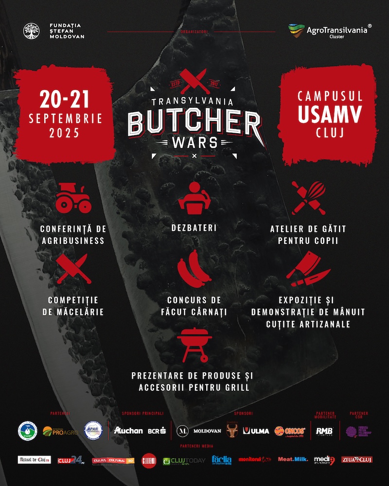 Cluj-Napoca va găzdui, în perioada 20–21 septembrie 2025, în premieră pentru România, competiția internațională Transylvania Butcher Wars, un eveniment unic dedicat artei măcelăriei și produselor de calitate, parte a circuitului global Butcher Wars, început în 2016 în Australia.