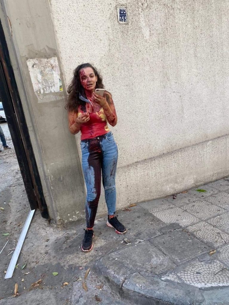 „Ce se vede la televizor este nimic, este 2% din realitatea de acolo. Am fost acolo, chiar la spitalul de vis-a-vis de port. Eu nu mai pot nici acum, îmi plânge inima. Erau oameni fără ochi, fără mâini, plini de sânge. Nici în filme nu există așa ceva. Am intrat în stare de șoc. Am început să țip. Toată lumea țipa și îi cerea ajutor lui Dumnezeu. Toți. Niște fete m-au scos din mașină. Erau pline de sânge. Peste tot numai sticlă. Eram sigură că au murit părinții mei și că mor și eu. Nu aveam nici o îndoaială. N-am putut să fac nimic, decât să mă uit la apocalipsă. Credeam că suntem atacați de Israel, pe bune, că au mai amenințat. Am zis că au dat o bombă și moare toată lumea. Toată mașina mea e distursă, sunt urme de sânge pe ea de la oamenii care s-au sprijinit. Eu am avut cumva noroc că eram în masină. Geamurile mașinii s-au spart, parbrizul mi-a venit în cap, geamurile laterale s-au spart și ele. Am doar câteva răni la picioare. Am ieșit apoi cu ajutorul acelor fete să vedem ce se întâmplă cu adevărat. Peste tot erau doar cioburi de sticlă, blocuri dărâmate, oameni plini de sânge care țipau. Fiecare încerca să-și sune familia, dar toată rețeaua de telecomunicații era picată. Și acum sunt probleme.