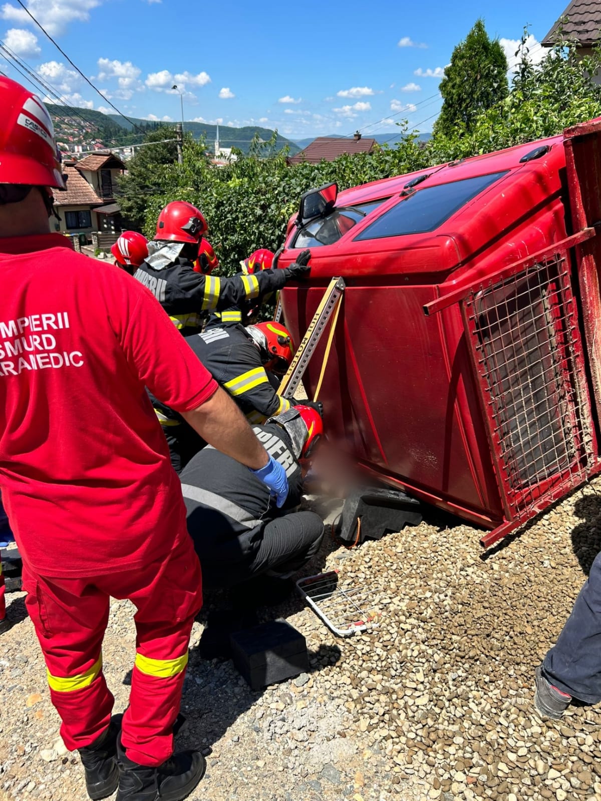 S-a întâmplat pe strada Dealu Florilor din Dej, la fața locului au sosit echipaje de prim-ajutor cu două autospeciale cu modul de descarcerare, un echipaj de prim-ajutor de la SMURD și unul de la Ambulanță, unde au găsit tânăra surprinsă sub partea laterală a autoutilitarei, în stare de conștiență și cooperantă. Echipajele au stabilizat și ridicat autovehiculul, reușind să extragă tânăra, în vârstă de aproximativ 20 de ani, fără agravarea stării generale. ”În momentul care a fost eliberată, echipajele au constatat că aceasta prezenta doar afecțiuni ușoare. Ulterior tânăra a fost transportată la spital pentru investigații și îngrijiri de specialitate”, a arătat ISU Cluj.