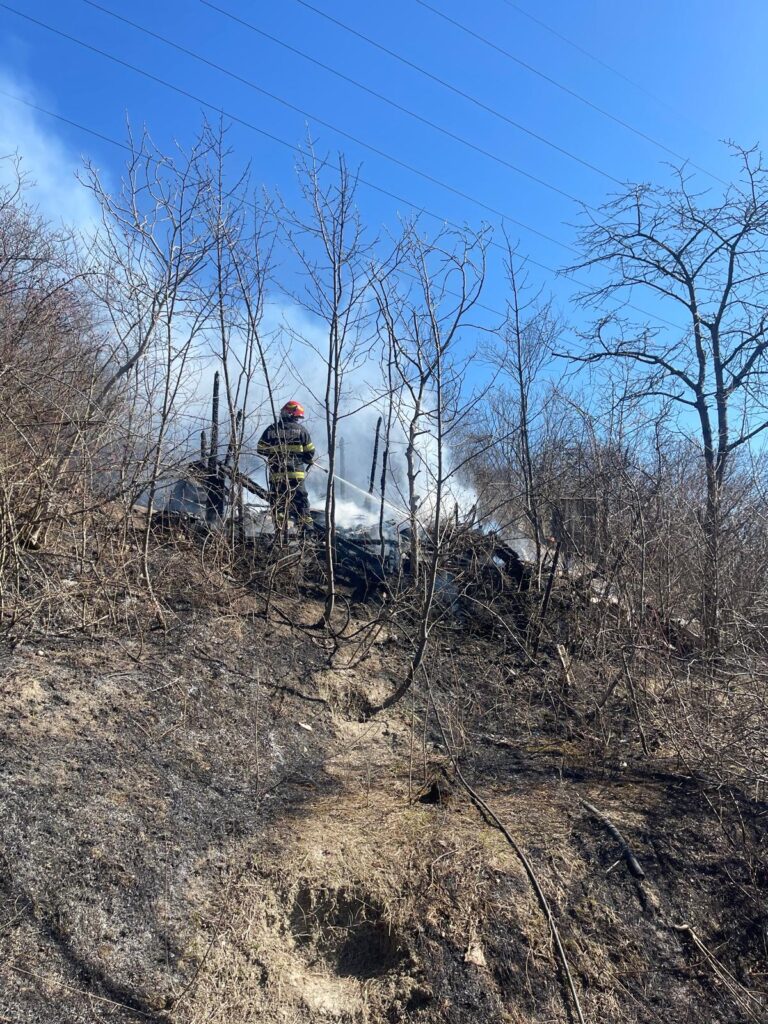 O cabană din lemn din Cluj-Napoca a luat foc în această dimineață, la fața locului intervin pompieri în aceste momente / Zona e greu accesibilă