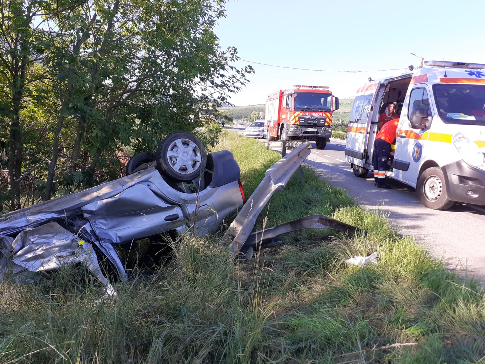 O mașină s-a răsturnat în localitatea clujeană Bunești, cu două persoane înăuntru
