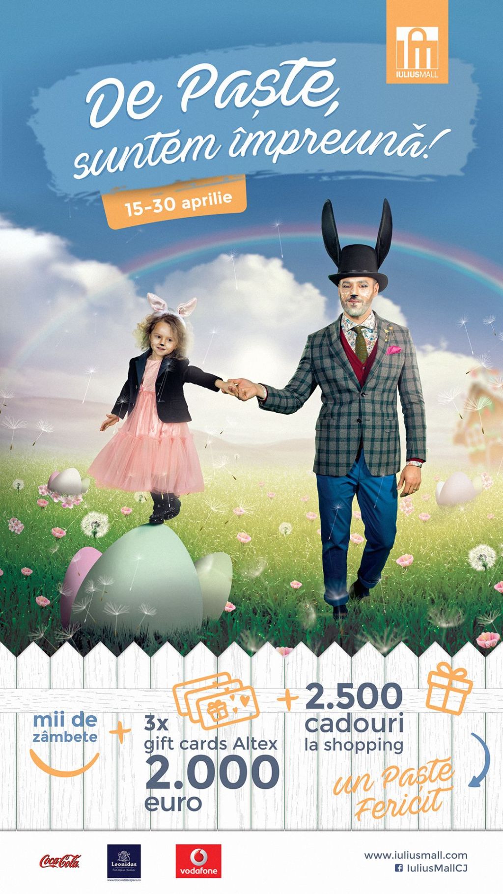 Iulius Mall Cluj îi va ajuta pe clienți să reunească familia de Paște, cele mai mari premii constând în dotarea locuinței cu electronice și electrocasnice care vor oferi un plus de confort. În acest an, trei clienți norocoși, desemnați prin tragere la sorți, vor fi răsplătiți cu sesiuni de cumpărături în magazinul Altex, în valoare de 2.000 de euro fiecare. Extragerea va avea loc pe 30 aprilie.