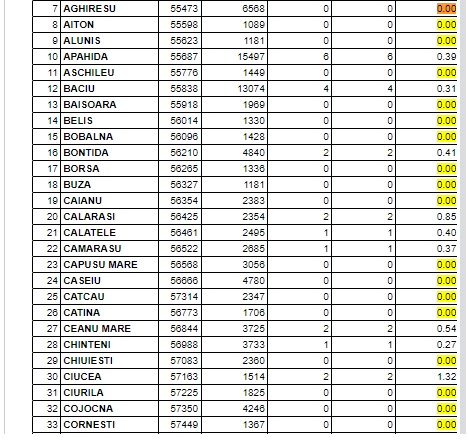În Cluj sunt azi 44 de UAT-uri cu zero cazuri de infecție, pentru prima dată în acest an sunt mai mult de jumătate din totalul de 81 de orașe și sate din județ. E vorba de Aghireșu, AIton, Aluniș, Așchileu, Băișoara, Beliș, Bobâlna, Borșa, Buza, Căianu, Căpușu Mare, Cășeiu, Câțcău, Cătina, Chiuiești, Ciurila, Cojocna, Cornești, Fizeșu Gherlii, Iara, Izvoru Crișului, Jichișu de Jos, Luna, Măguri Răcătău, Mănăstireni, Mărgău, Mărișel, Mihai Viteazu, Mociu, Moldovenești, Negreni, Palatca, Panticeu, Petreștii de Jos, Ploscoș, Râșca, Săcuieu, Sâncraiu, Sânmărtin, Suatu, Vad, Valea Ierii și Vultureni.