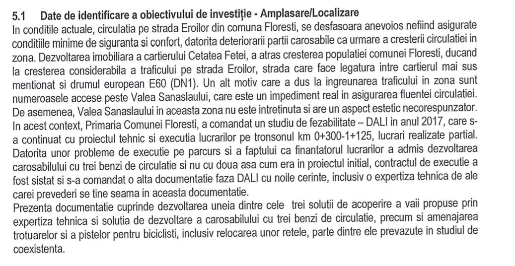 Primăria din Florești a pus la punct documentația pentru reluarea șantierului de modernizarea a străzii Eroilor, o arteră de peste 1 kilometru din comună începută în mandatul fostei administrații. După modelul din Cluj-Napoca, unde municipalitatea a lărgit la trei benzi de circulație artera majoră de trafic dintr-un cartier nou al orașului, Bună Ziua, administrația din Florești intenționează să lărgească strada Eroilor la 3 benzi de circulație, două din DN 1 spre Cetatea Fetei și una în sens invers. Săptămâna trecută s-a lansat și licitația pentru modernizare. Contractul este estimat la peste 8,5 milioane lei și o durată de 7 luni iar ofertele se depun în 9 februarie. Floreștenii s-au plâns anul trecut că le-a luat o oră și 20 de minute de pe Eroilor până la intrarea în Cluj-Napoca, cu autobuzul, mai ales având în vedere șantierul de pe respectiva stradă. Constructorii care se ocupau de șantier au decis la începutul lui 2021 să rezilieze contractul după ce Primăria nu s-ar fi achitat de obligații contractuale. De atunci șantierul este conservat în stadiul lăsat de constructori iar traficul se derulează anevoios.